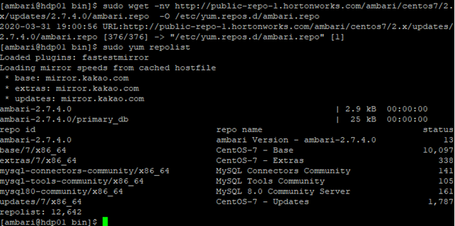 : Cloudera 계정 인증이 필요 없는 ambari-2.7.4 버전을 다운로드받아 설치