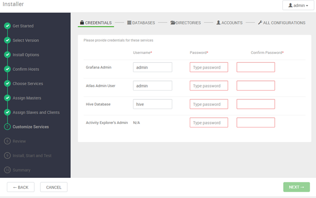 - 각 서비스별 추가 설정해야할 항목들을 입력해준다. 주로 서비스 계정 설정과 Default DB 정보들을 입력하게 된다.